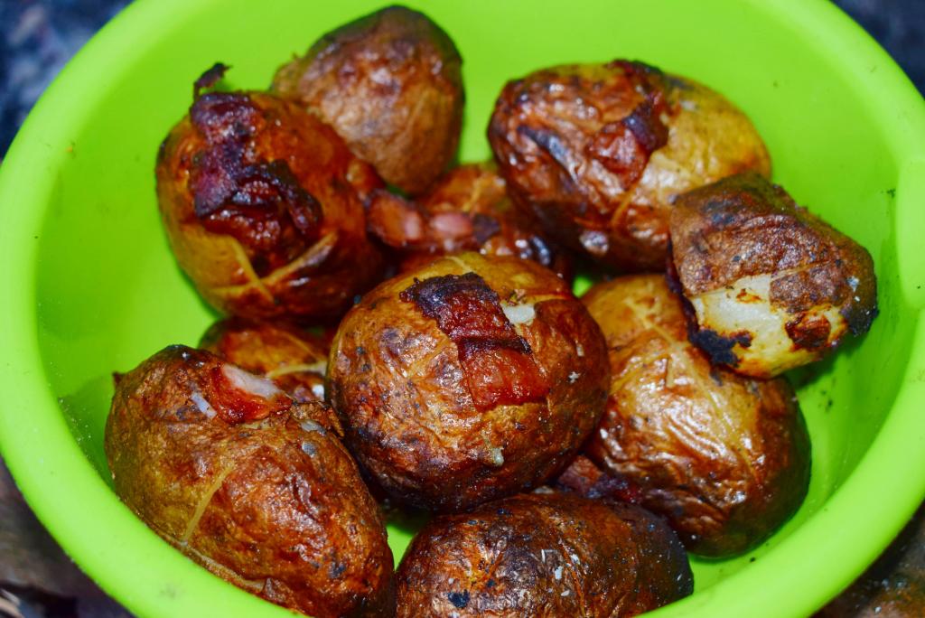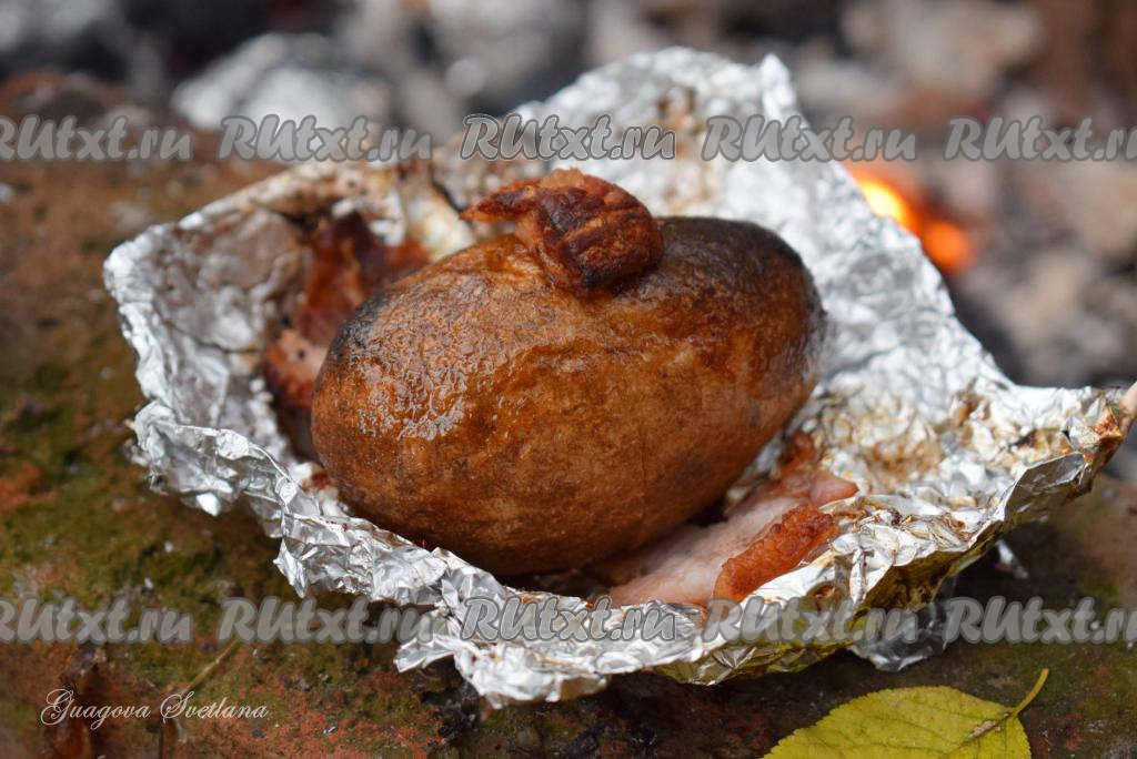 Запеченный картофель получается очень вкусным, его с удовольствием съедят без остатка. Он даже не нуждается в подсаливании (но это дело вкуса), так как сало отдаст соль в процессе запекания. Картошку, запеченную в фольге на костре, можно кушать, не очищая от кожуры. Кожура, благодаря вытопившемуся салу, получается поджаренной и аппетитной. Прекрасное блюдо для пикника, попробуйте!
