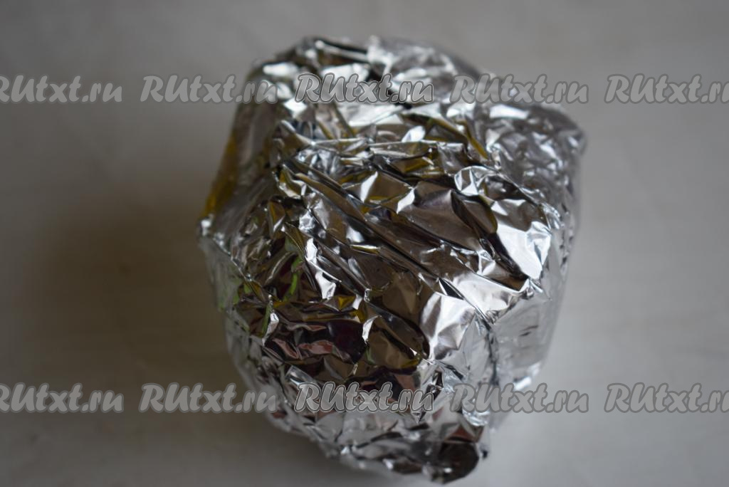 Плотно заворачиваем каждую картофелину с салом в фольгу.