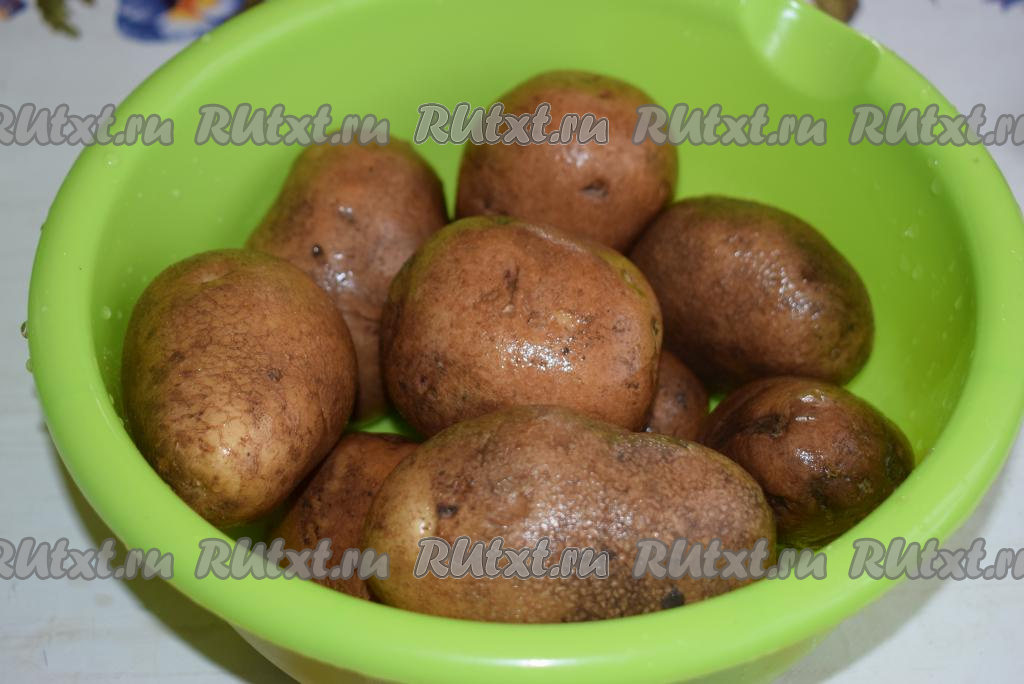 Картофель тщательно моем при помощи щетки (картошку, запеченную в фольге, можно кушать вместе с кожурой, которая становится очень вкусной, а значит перед запеканием каждую картофелину нужно вымыть очень тщательно).
