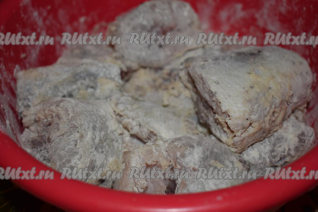 Даем рыбе просолиться, пропитаться специями и лимонным соком в течение 15 минут. Далее обваливаем каждый кусочек судака со всех сторон в муке.