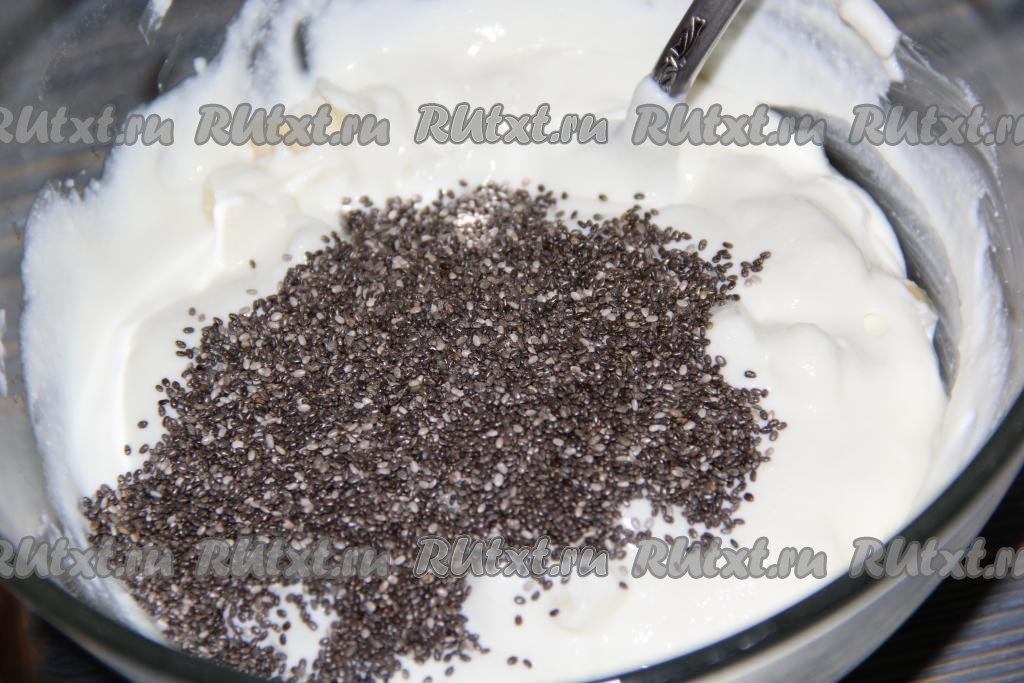 Перемешать творожную массу с яблоками. Если добавляете мак или семена чиа, тогда всыпьте их в творожно-яблочную массу и перемешайте.