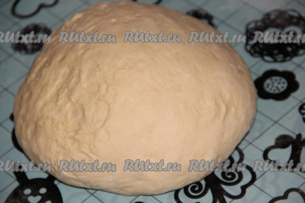 Для начала приготовим тесто, для этого в глубокую миску нужно влить слегка подогретый кефир, затем добавить сахар и соль, перемешать. Муку соединить с сухими дрожжами и всыпать в кефир. Замесить нежное тесто. В конце замеса добавить растительное масло и хорошо вмешать его в тесто. Оставить тесто в миске, накрыв полотенцем. Примерно через час, может чуть больше (тесто должно хорошо увеличиться в объёме), обмять тесто и оставить его ещё минут на 35-40. Затем выложить тесто на силиконовый коврик (или стол), припыленный мукой, и обмять.