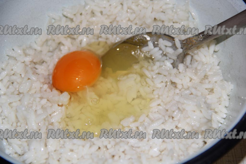 Перемешать рис с сахаром и солью, а затем добавить яйцо.
