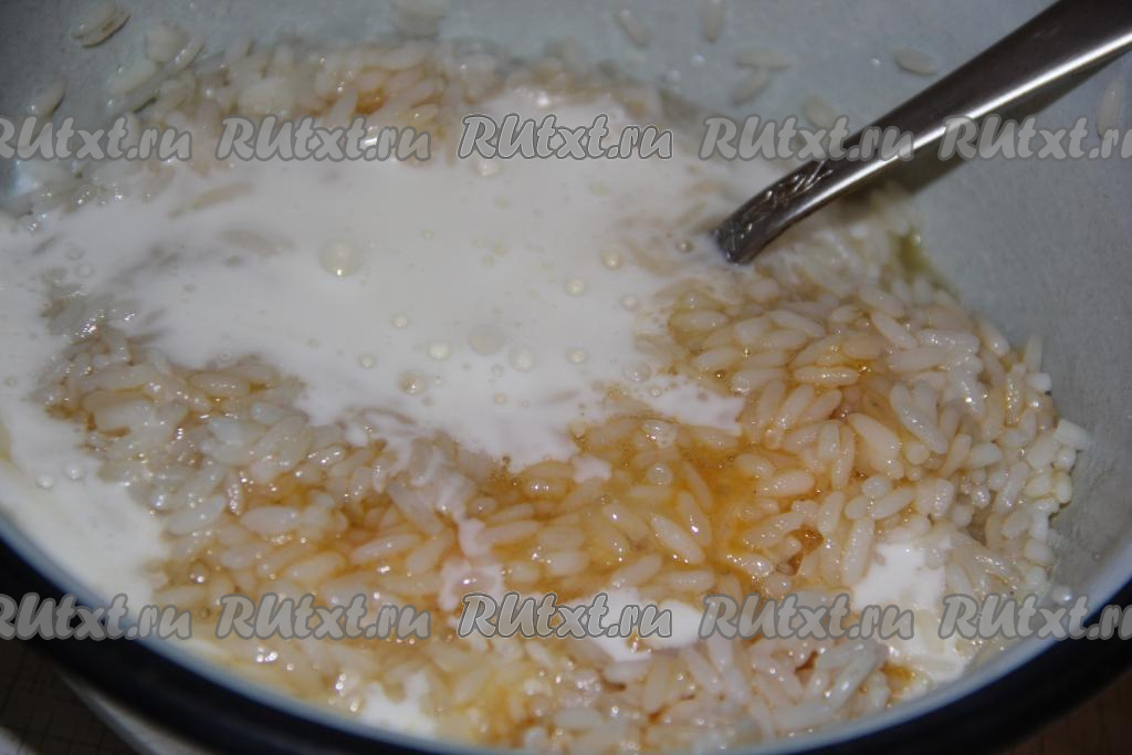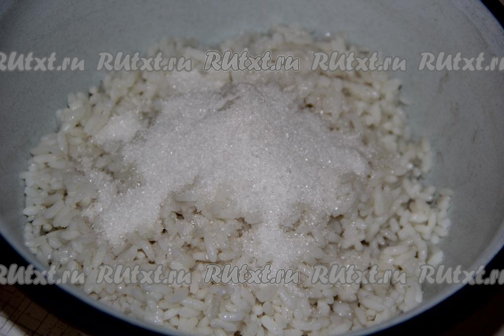 В вареный рис добавить сахар и соль.