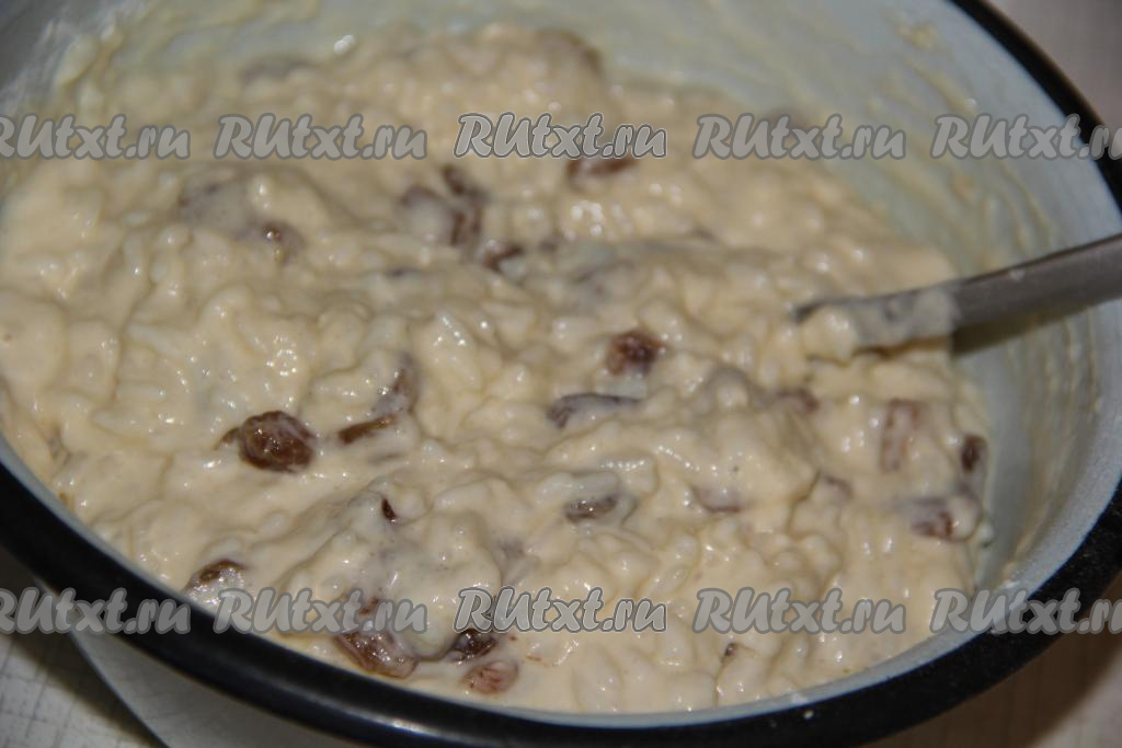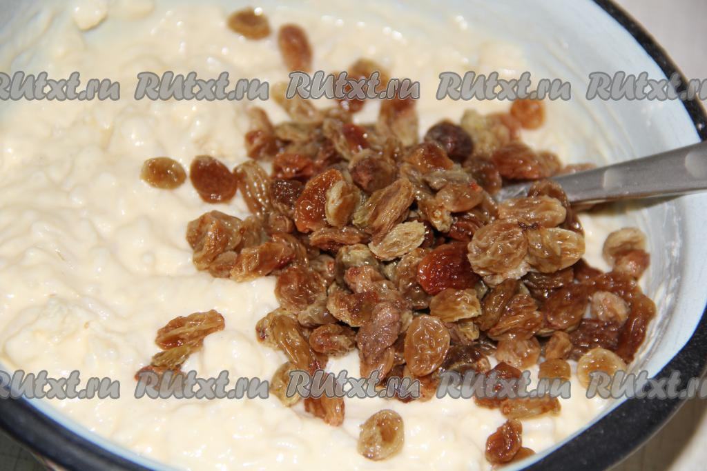 Перемешать получившуюся рисовую массу и добавить изюм.
