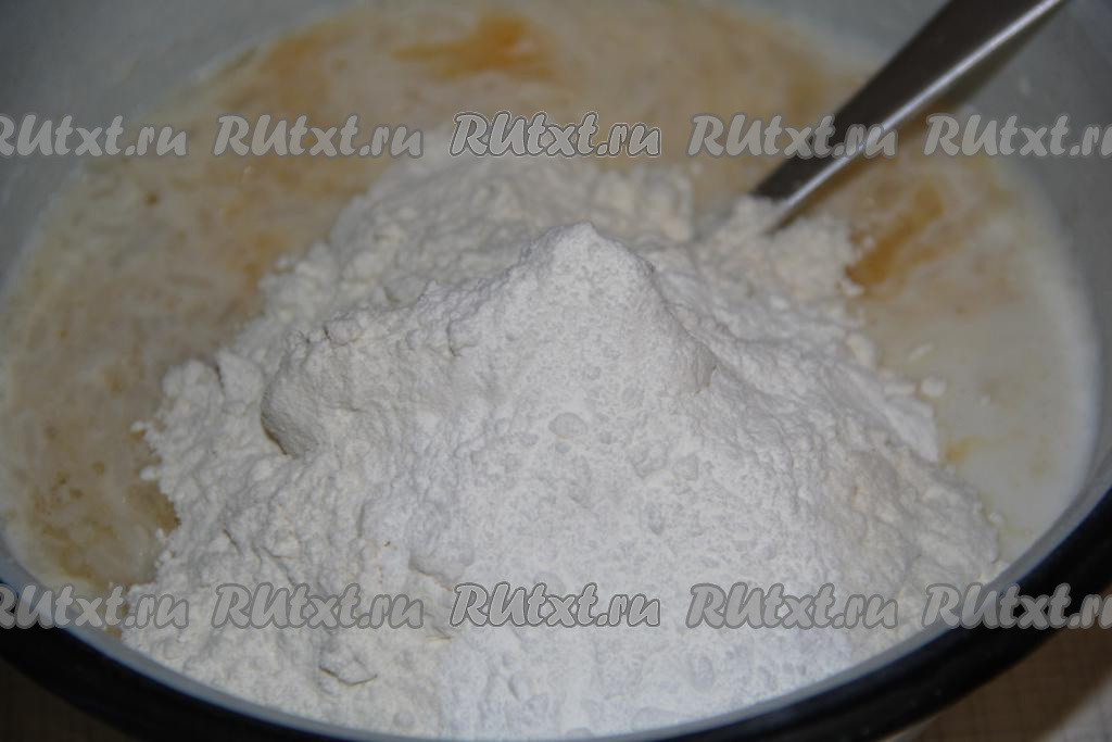 Добавить муку и разрыхлитель.