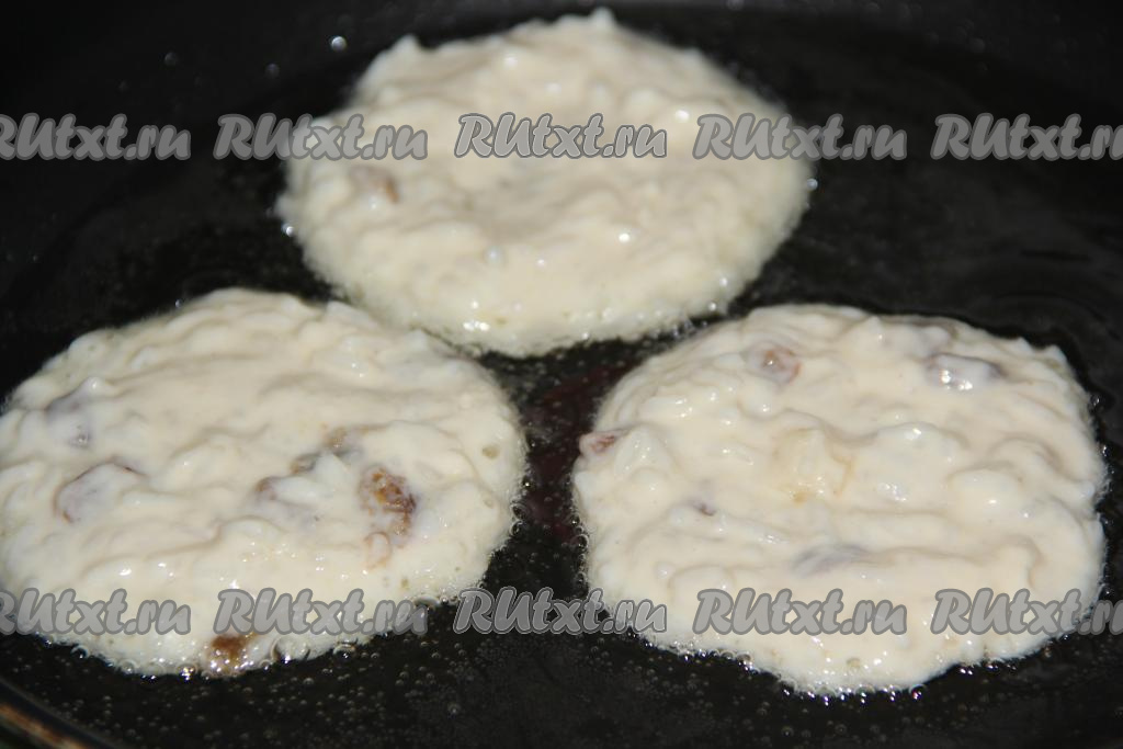 Жарить оладушки с двух сторон до золотистого цвета на среднем огне.