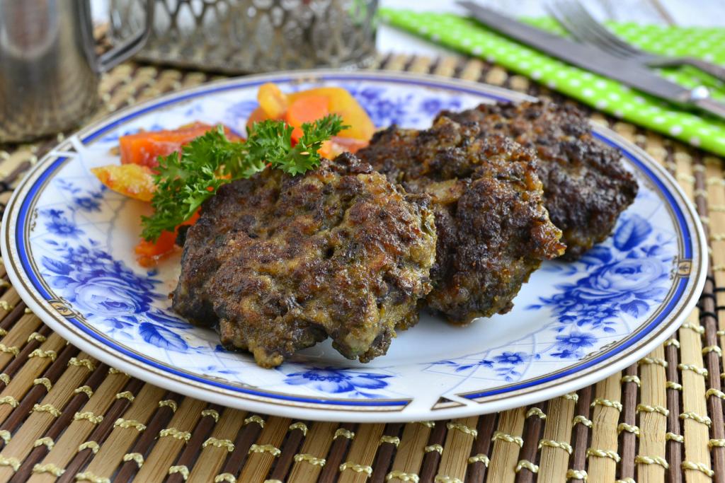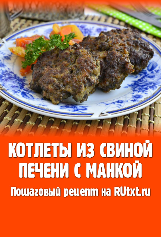 Сочные, пышные, вкусные котлеты, приготовленные из свиной печени с добавлением манки, к столу подаём горячими, дополнив гарниром.