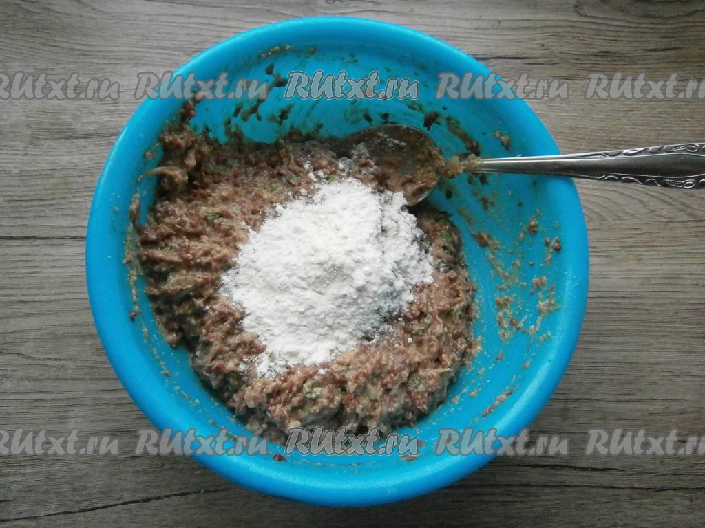 Добавить измельченное сало с луком к печени, всыпать соль и перец.