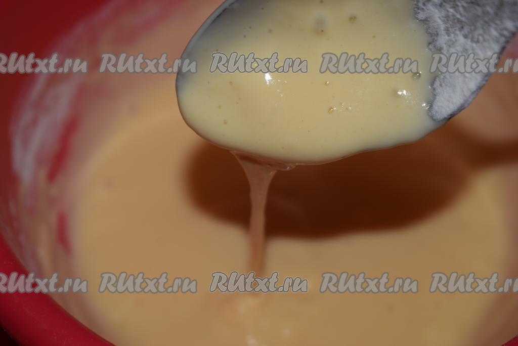 При помощи ложки размешаем кляр до однородности, по консистенции он будет похож на сгущенное молоко.