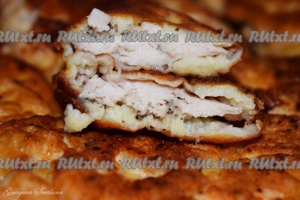 Подаем куриное филе, приготовленное в сметанном кляре, с картофельным пюре, гречкой, рисом, овощами гриль или с любым другим гарниром на ваш вкус.