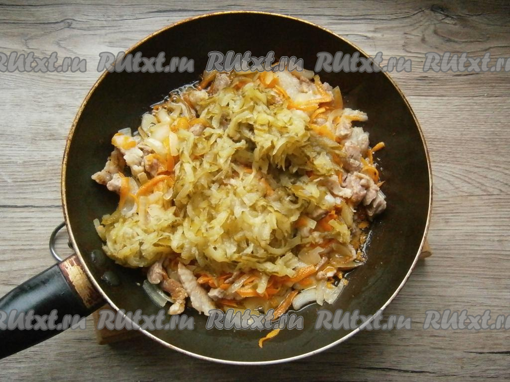 Обжаривать все вместе, помешивая, на среднем огне минут 5, после чего добавить натертые на крупной терке соленые огурцы.