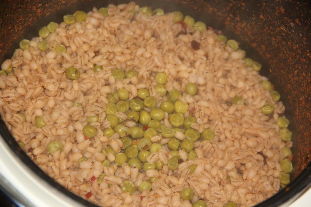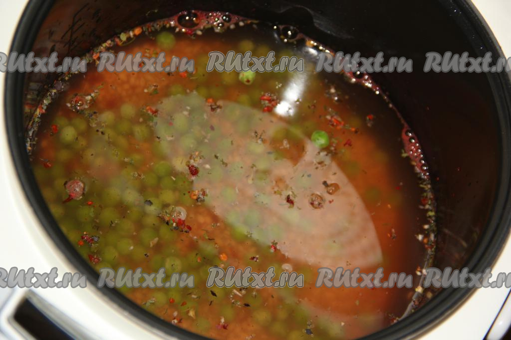 Я добавила зелёный замороженный горошек (предварительно не размораживала), но горошек исключительно по желанию.