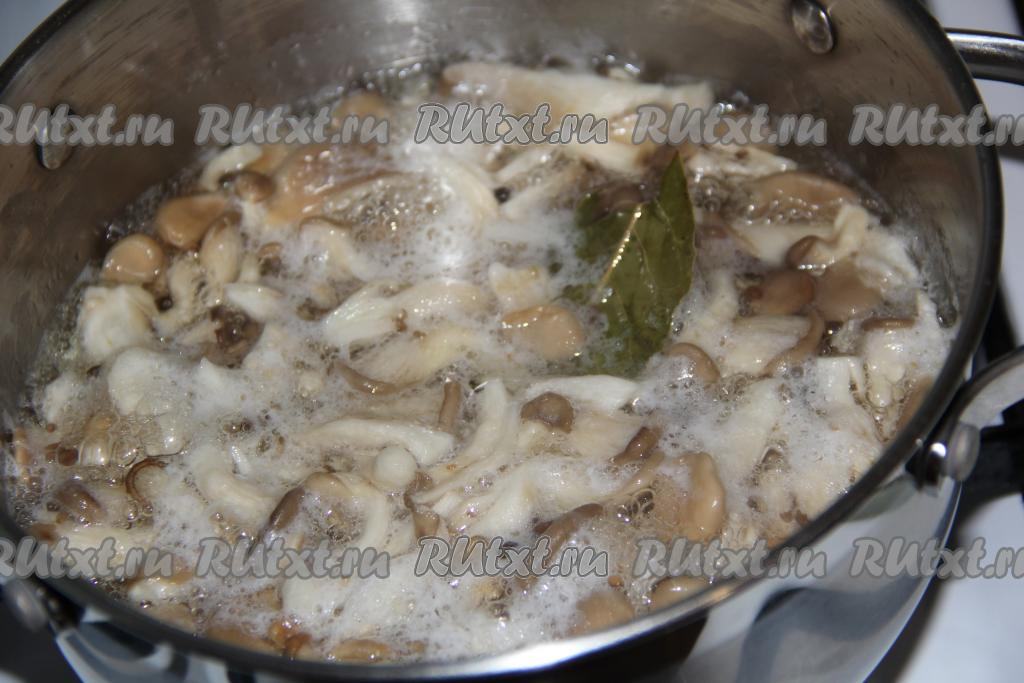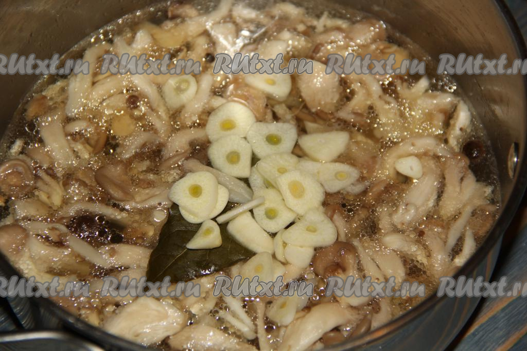 Варить вешенки в маринаде 10 минут с момента закипания на среднем огне.