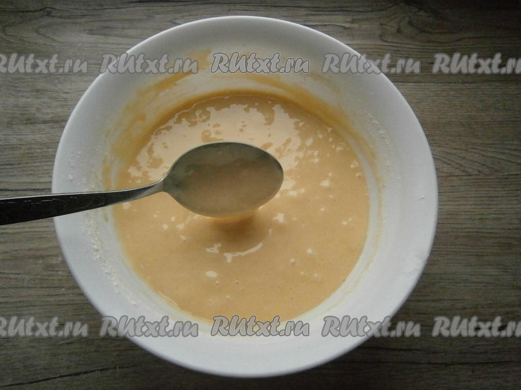 Замесить венчиком тесто, похожее на жидкую сметану.