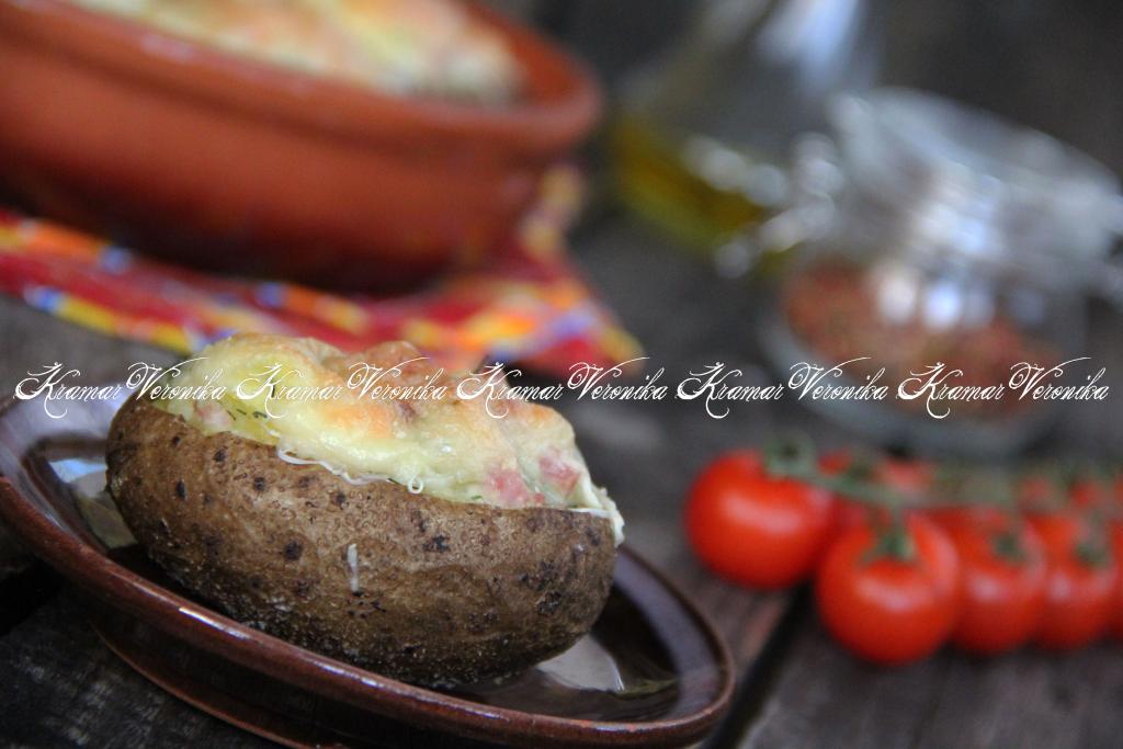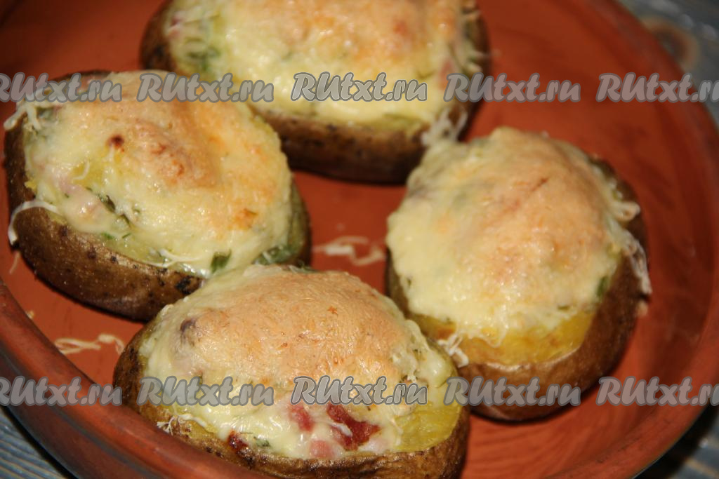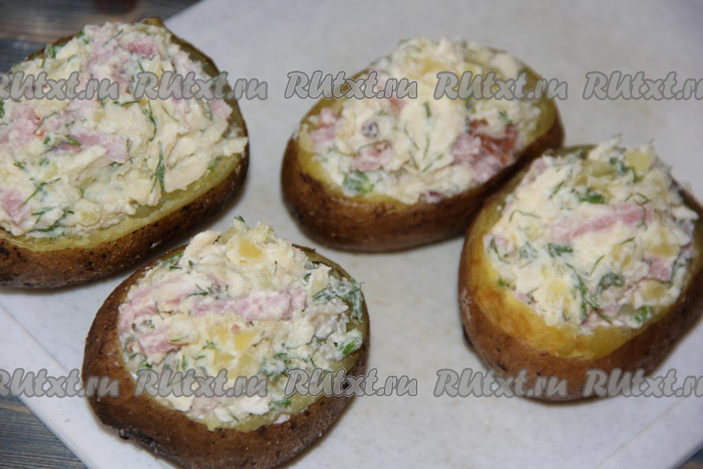 Аппетитное, сытное и очень вкусное блюдо подать к столу в горячем виде. Начинка из ветчины и сыра прекрасно подходит для фарширования картошки.