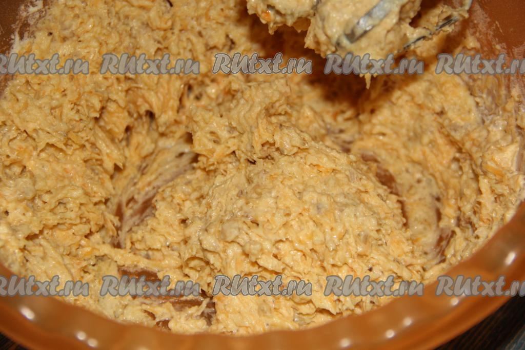 Не увеличивая скорости миксера, перемешать тесто до однородного состояния.