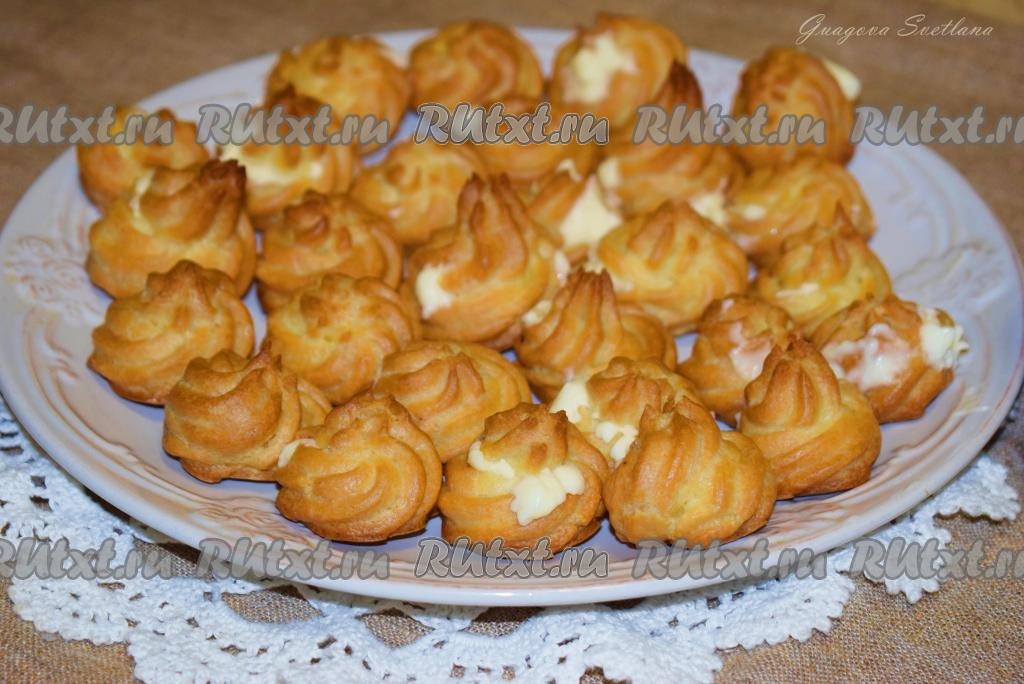 Профитроли пришли к нам из французской кухни. Они представляют собой небольшие округлые изделия из заварного теста, испеченные в духовке. Главной особенностью профитролей является полость внутри изделия, образующаяся при выпечке. Именно эту полость заполняют различными сладкими кремами или солеными начинками. Попробуйте приготовить профитроли из заварного теста по этому рецепту - он очень удачный!