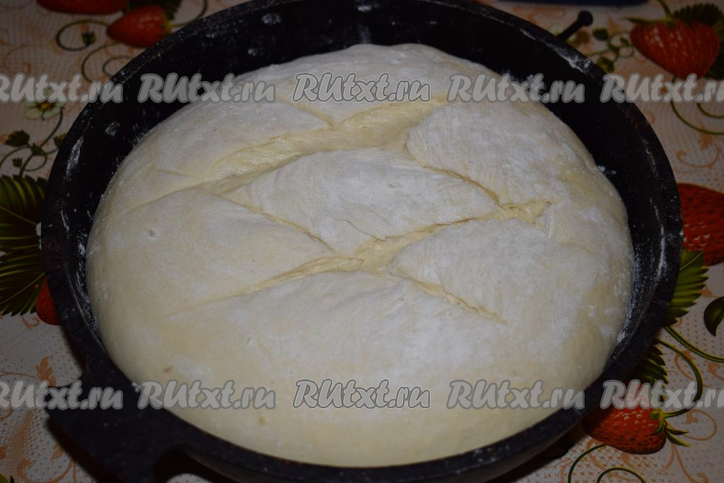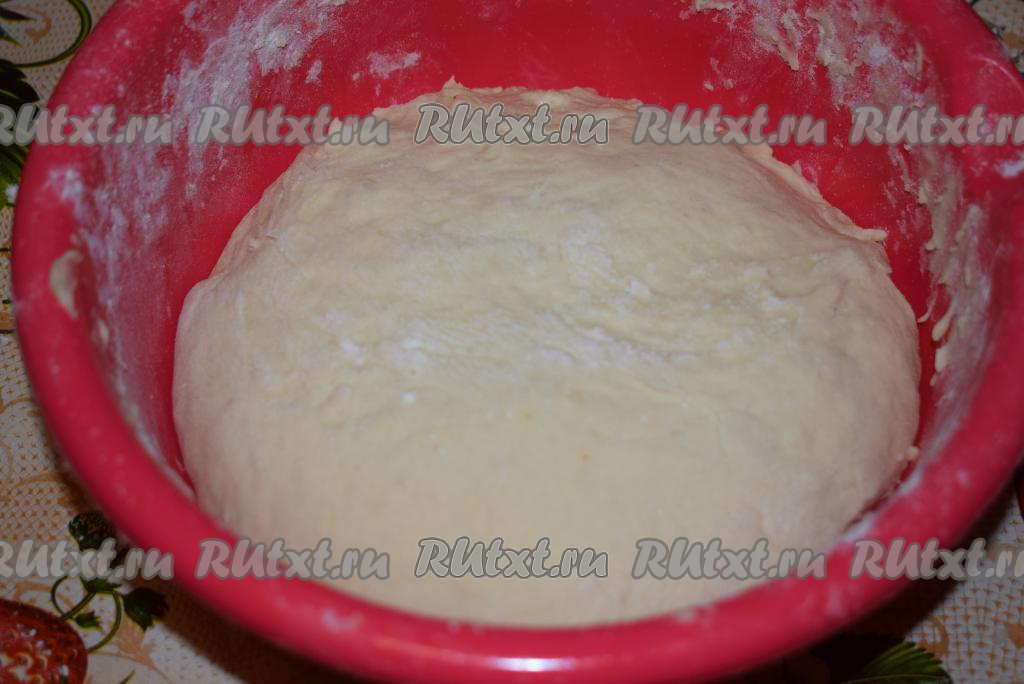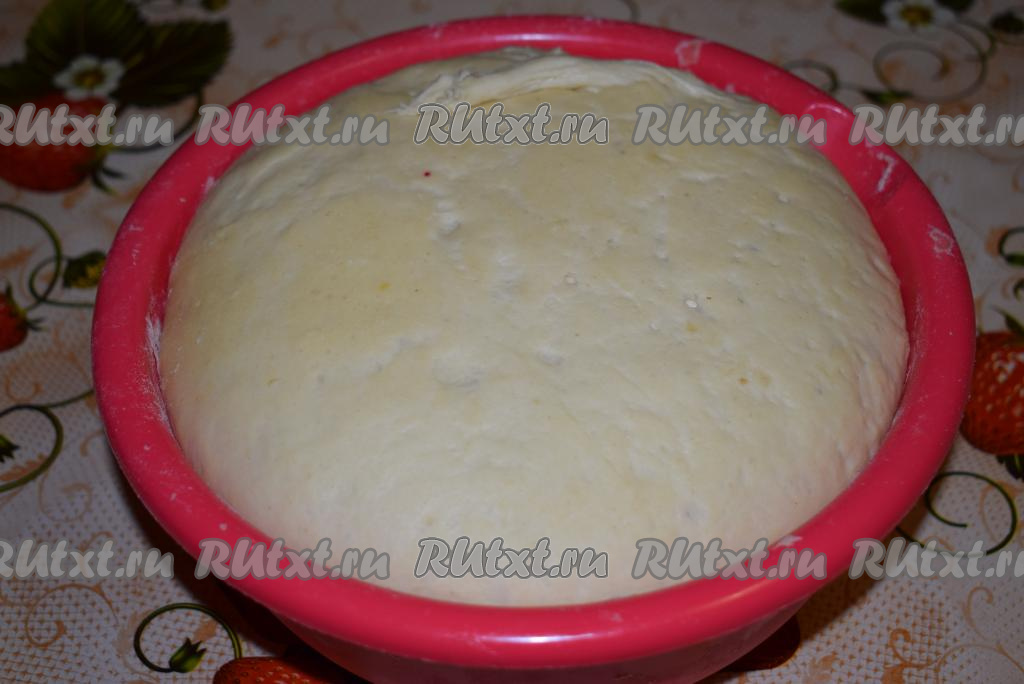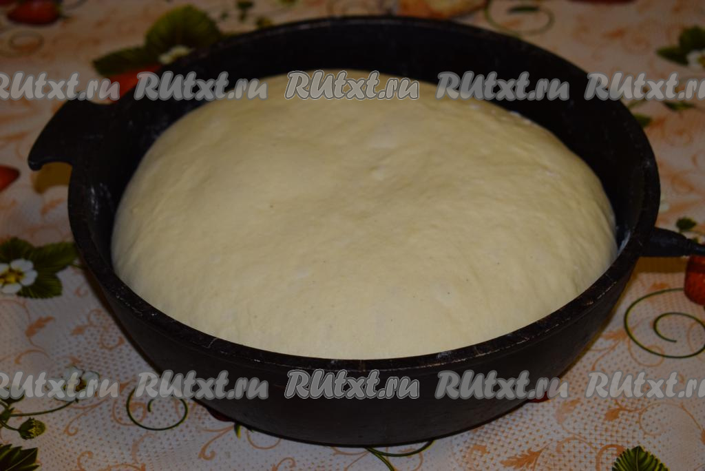 Накрываем тесто полотенцем (или пленкой) и ставим в теплое место без сквозняков на 1,5-2 часа для подъема. Готовое тесто хорошо увеличится в размерах.