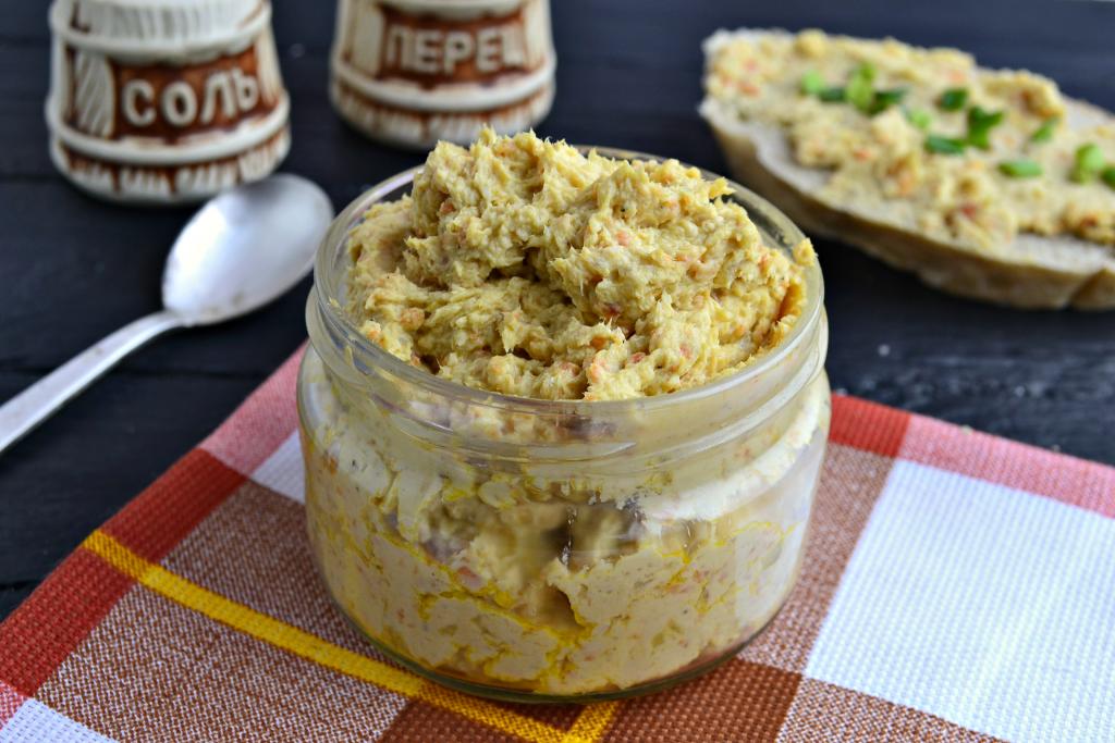 Готовый паштет из куриного филе использовать по назначению или переложить в стеклянную баночку, накрыть крышкой и отправить в холодильник.