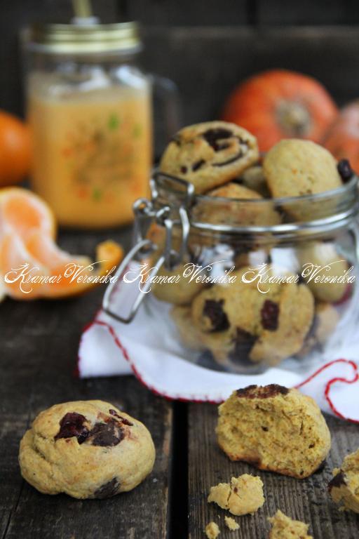Недавно приготовила печенье из тыквенного пюре. В роли добавки я использовала сушёную клюкву и шоколадные капли, но с добавками можно экспериментировать, к примеру, добавить изюм. Печенье получается очень вкусным и рассыпчатым. Такая выпечка, если сразу не съедите, хорошо хранится в банке с крышкой. Отличное печенье для всей семьи, попробуйте!