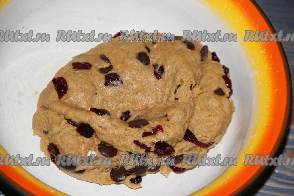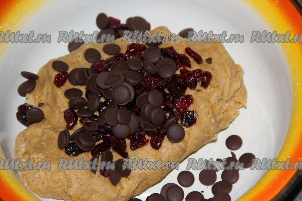 Добавить в тесто клюкву и шоколад. В роли начинки можно взять изюм или сушёную вишню.