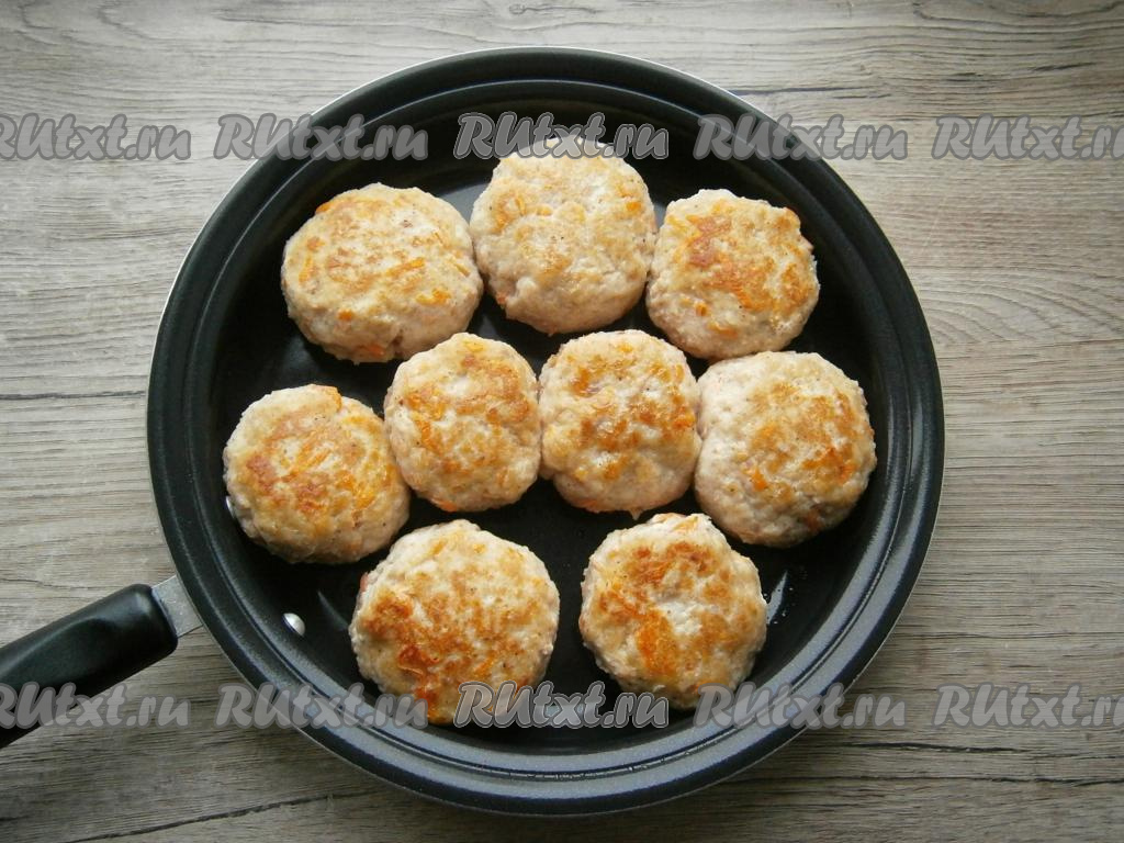 Фарш тщательно перемешать, немного отбить и мокрыми руками сформировать тефтели, которые обжарить на растительном масле на среднем огне до румяности с двух сторон (буквально по 2 минуты с каждой стороны).