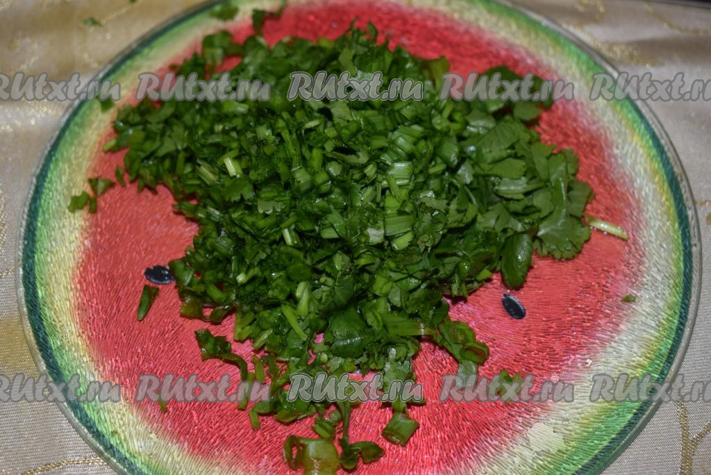 Мелко нарежем лук и кинзу.