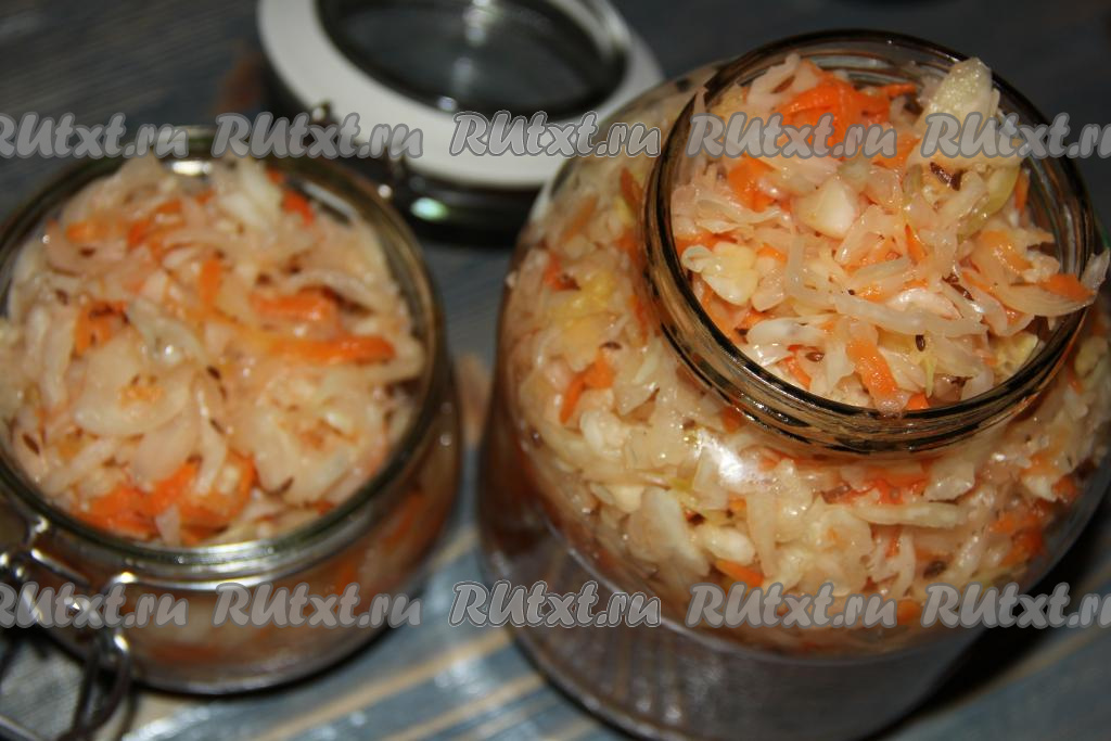 Хранить банки с капустой нужно в прохладном месте (можно в холодильнике или погребе). Капуста, квашеная с морковью и тмином, получается хрустящей, ароматной и очень вкусной, попробуйте!