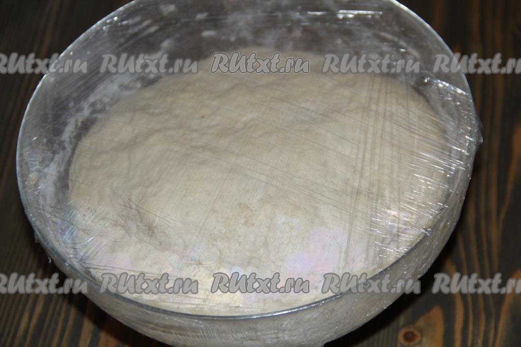 Оставить тесто в миске, накрыть пищевой плёнкой и поставить в тепло на 1,5 часа. Тесто хорошо увеличится в объёме.