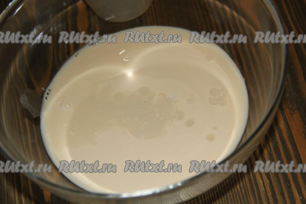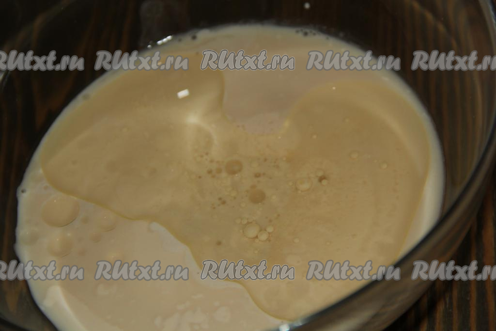 Для начала развести дрожжи в 50 мл тёплой воды, оставить на 15 минут. За это время дрожжи активируются и на их поверхности появится характерная "шапочка".