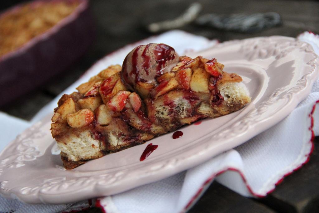 Нежнейшую, необыкновенно вкусную шарлотку, приготовленную из черствого хлеба с яблоками, слегка остудить, нарезать на кусочки и подать к столу (я подала с шариком мороженого). Приготовьте этот десерт и вы снова и снова будете возвращаться к этому рецепту!