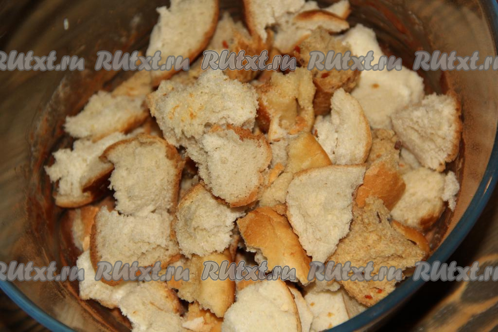 Хлеб наломать на кусочки, не очень мелко.
