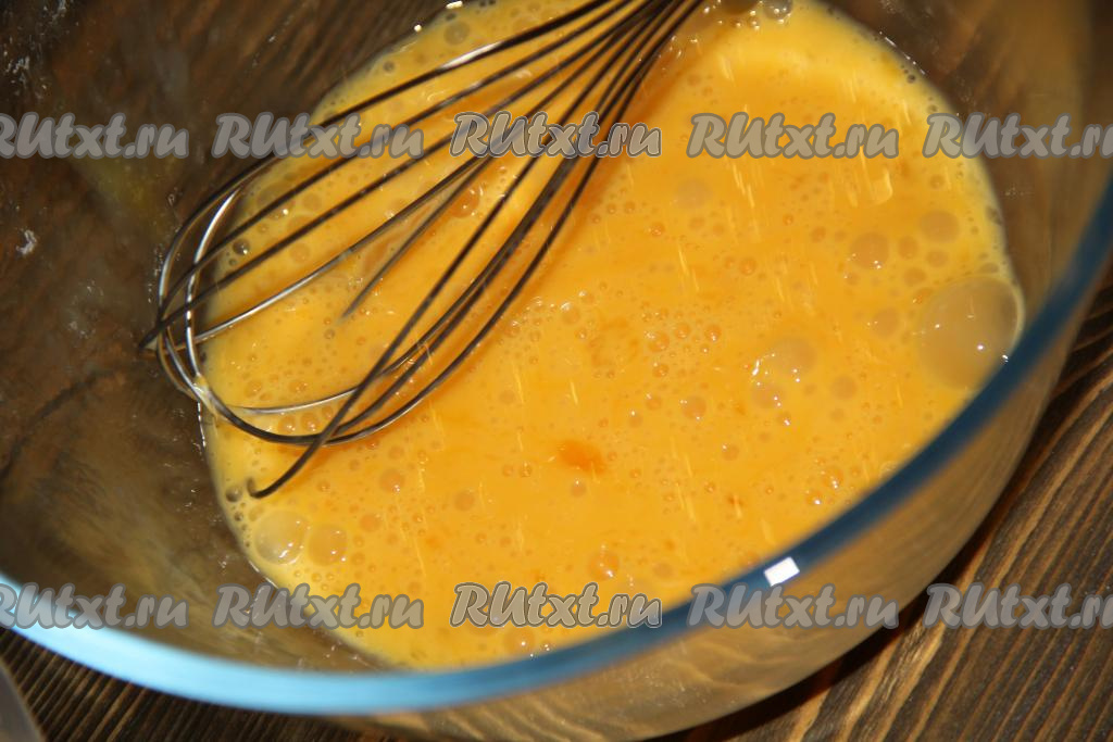 Яйца слегка взбить венчиком.
