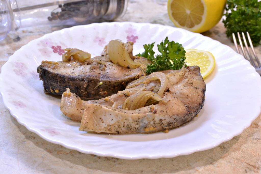 Очень вкусные и нежные стейки рыбы, приготовленные в фольге в мультиварке, подать к столу.