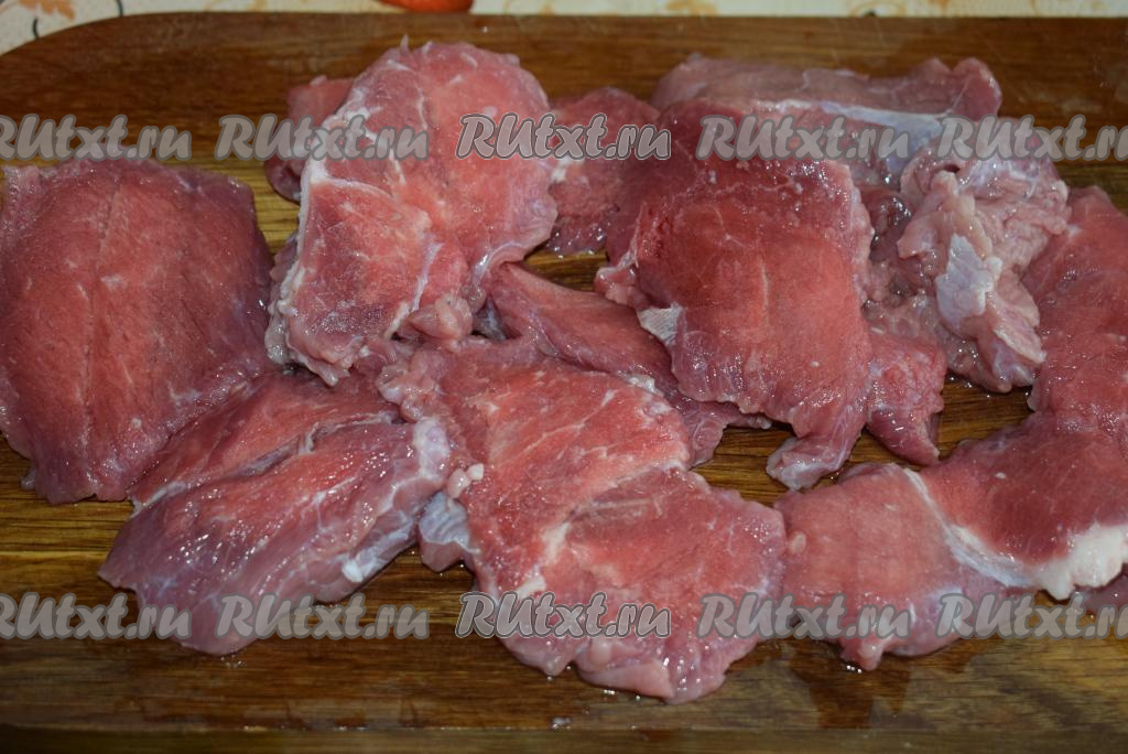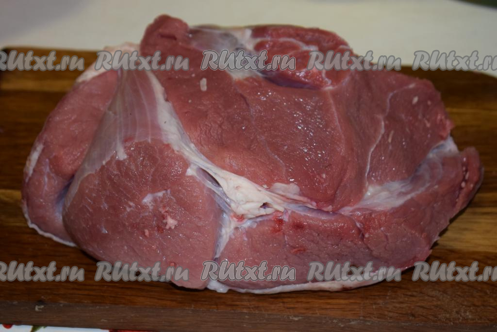 Нарезаем мякоть говядины на крупные кусочки размером, примерно, 7х10 см.