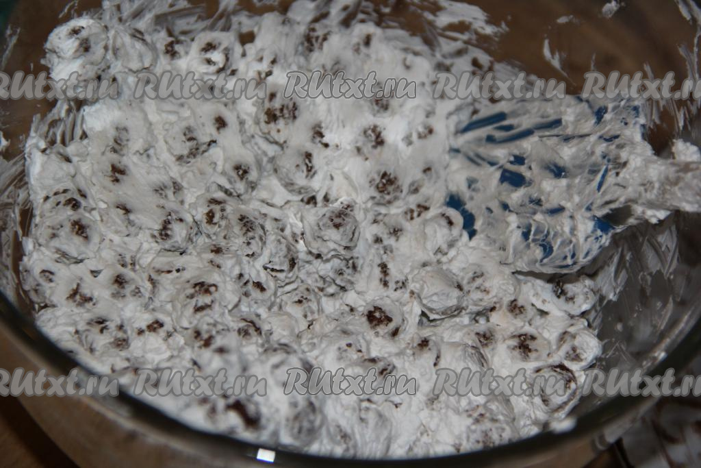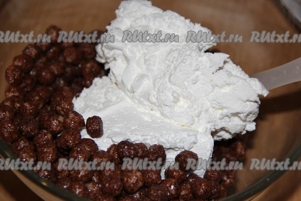 Аккуратно перемешать массу. Все шарики должны покрыться взбитыми сливками.
