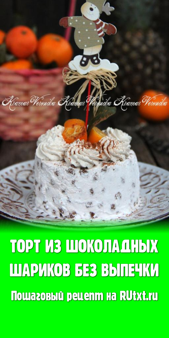 Украсить тортик по своему вкусу (я сделала несколько цветочков из взбитых сливок и украсила кумкватом). Торт из шоколадных шариков, приготовленный без выпечки, можно подавать к столу. Он прекрасно нарезается на кусочки. Очень простой и быстрый тортик, к тому же еще и очень вкусный, попробуйте!