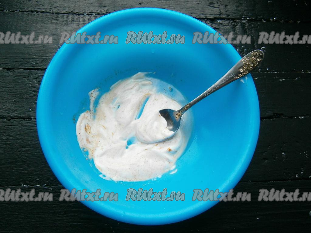 К 100 граммам сметаны добавить любые специи на ваше усмотрение и соль, перемешать.