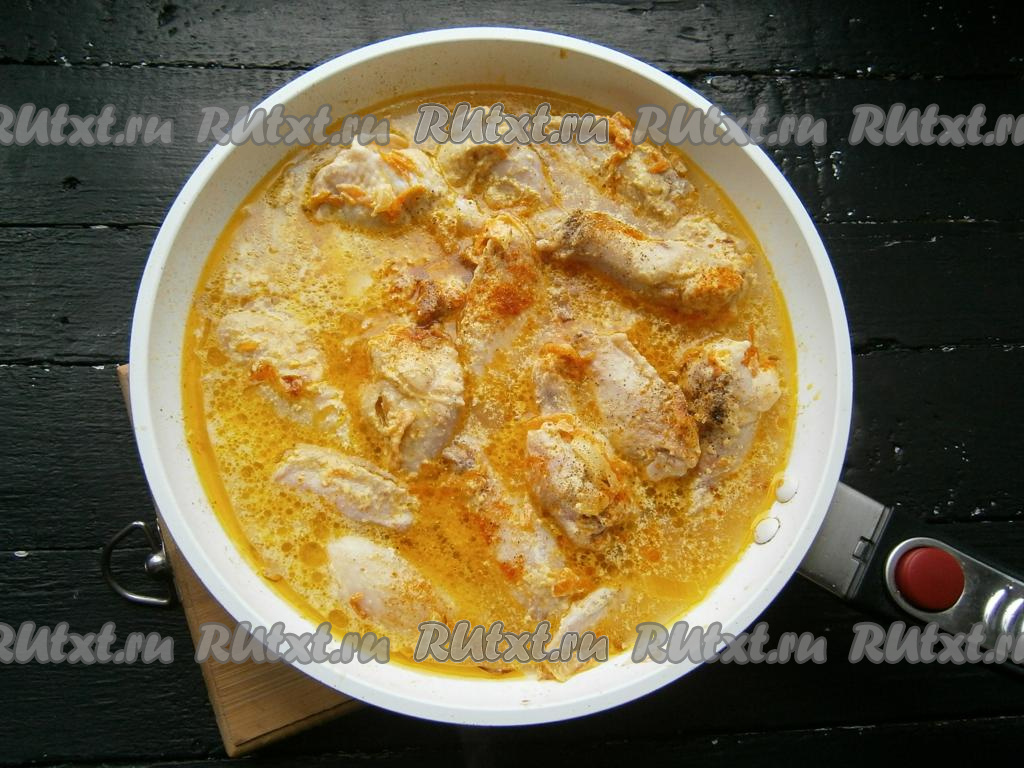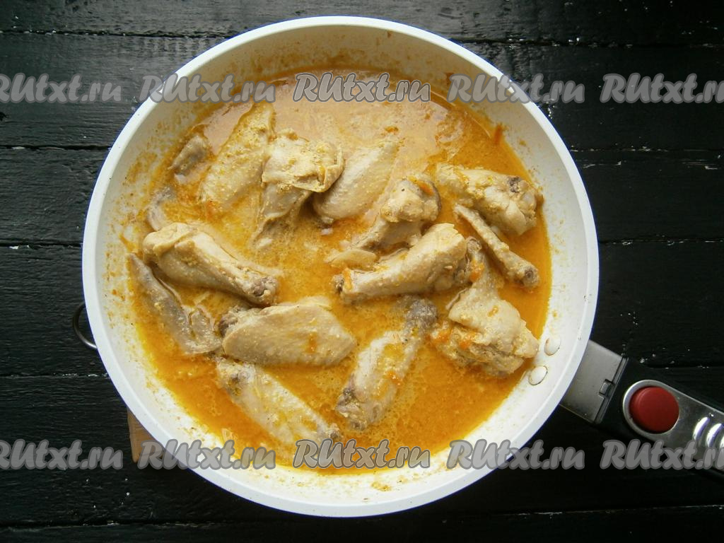 Куриные крылышки, приготовленные в сметане на сковороде, получаются очень нежными и вкусными, попробуйте!