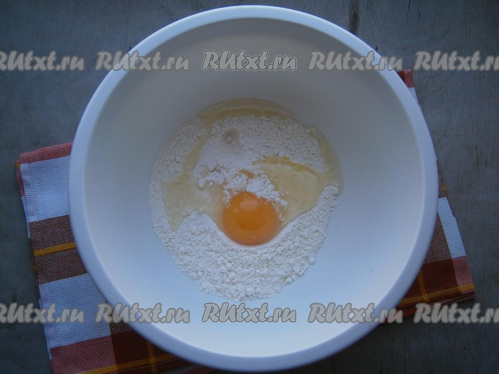 Для приготовления теста в муку добавить сырое яйцо, всыпать соль.