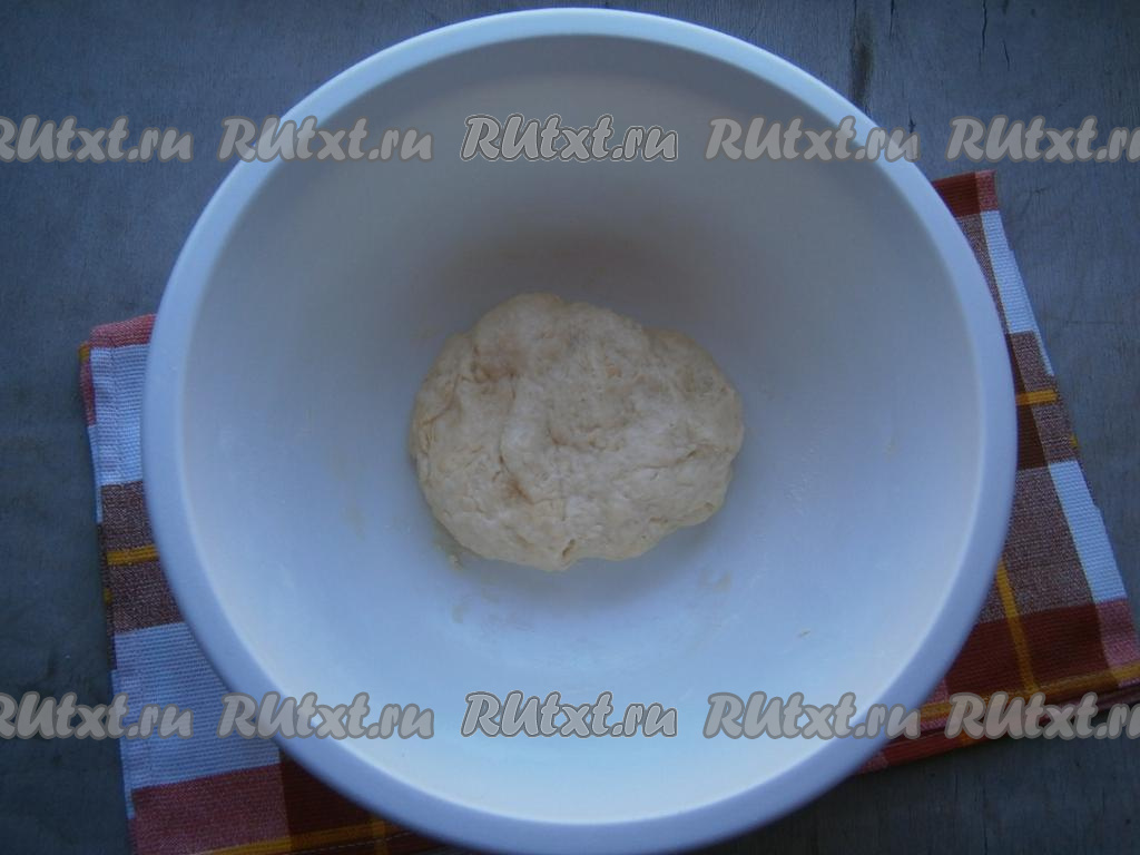 Вымешивать тесто до тех пор, пока оно не станет отлипать от рук и поверхности. Тесто прикрыть пленкой и оставить на 30-40 минут.