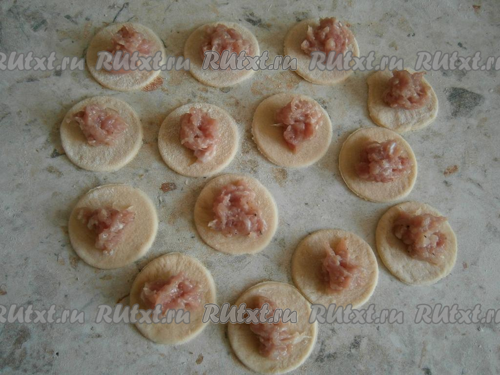 В середину кружков поместить немного свиного фарша.