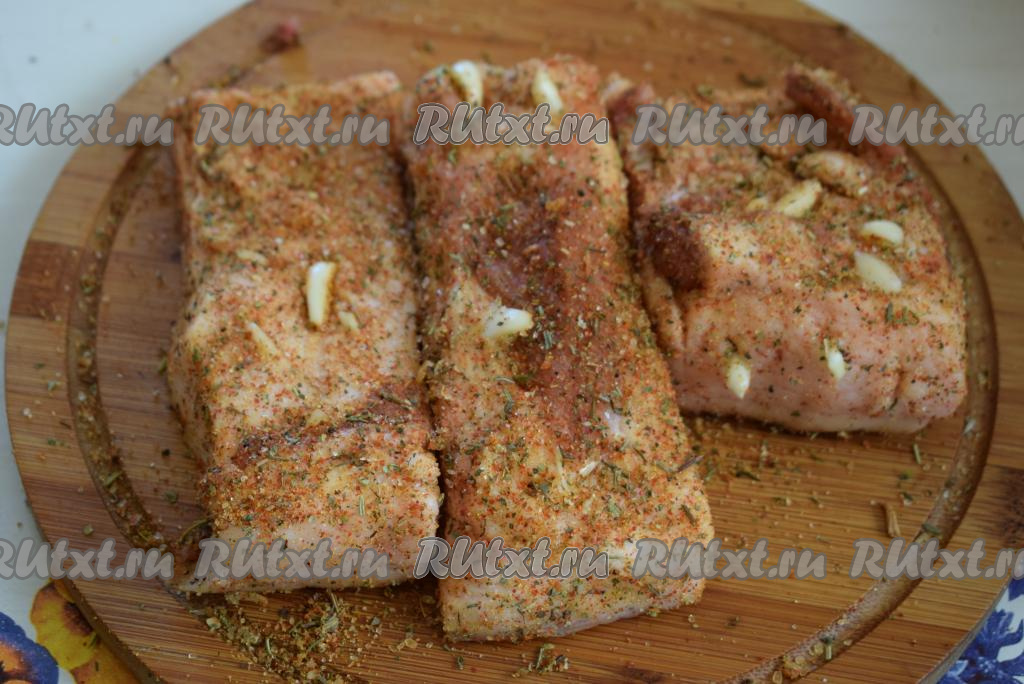 Далее делаем ножом надрезы в сале.
