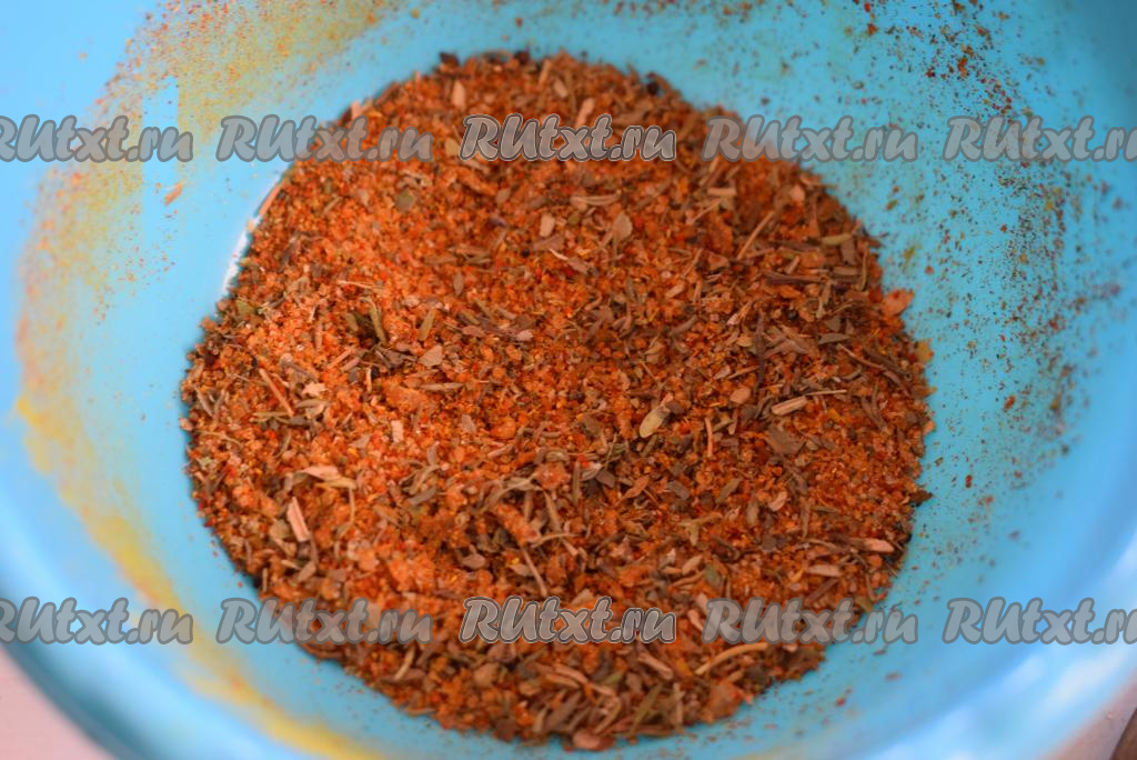 Далее смешиваем все специи между собой. Затем добавляем к специям 3 столовые ложки соли и перемешиваем до однородности.