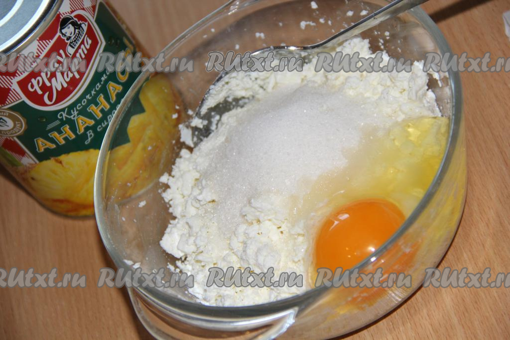 Пирог с творогом и консервированными ананасами