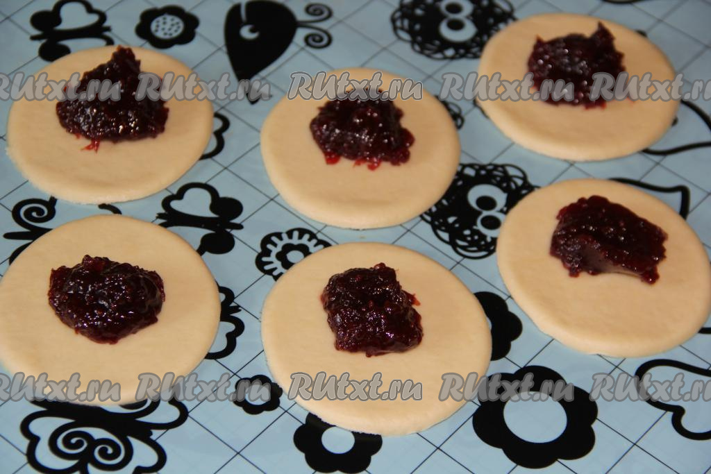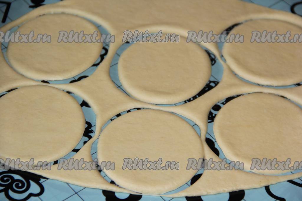 Раскатать тесто в пласт (не тонко). Вырезать кружочки стаканом (или формой).