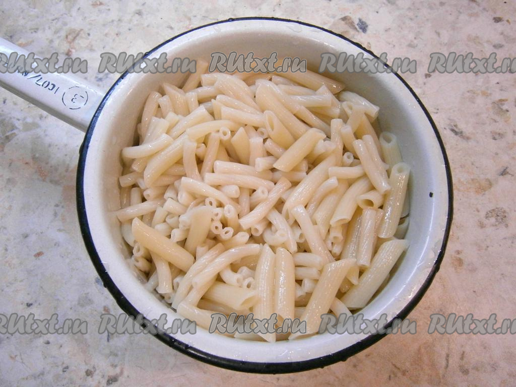 Предварительно отварить до готовности макароны, согласно инструкции на упаковке, откинуть их на дуршлаг. Морковку и лук очистить.