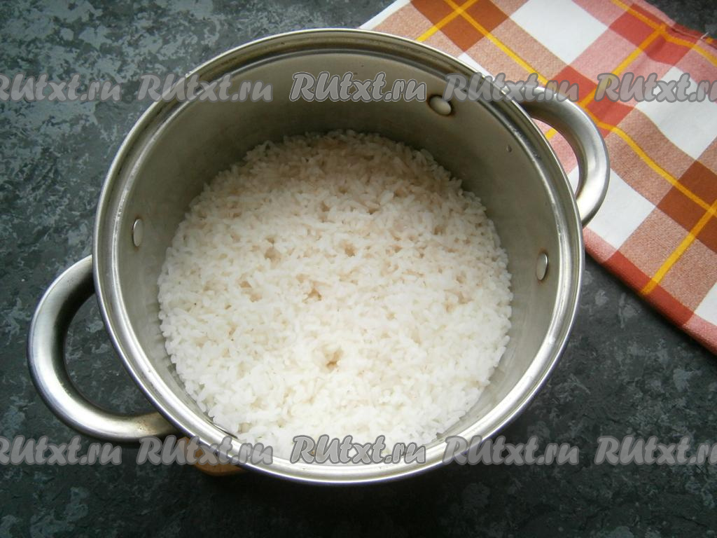 Убрать кастрюлю с огня, снять крышку, накрыть кастрюлю полотенцем и снова закрыть ее крышкой. Оставить рис еще на 15 минут.