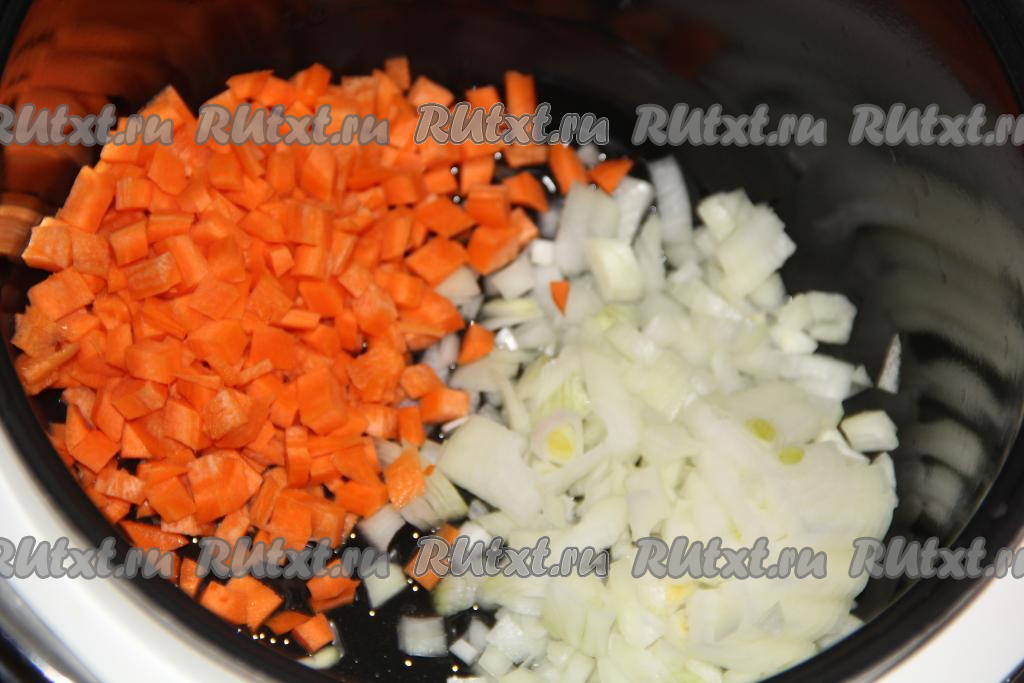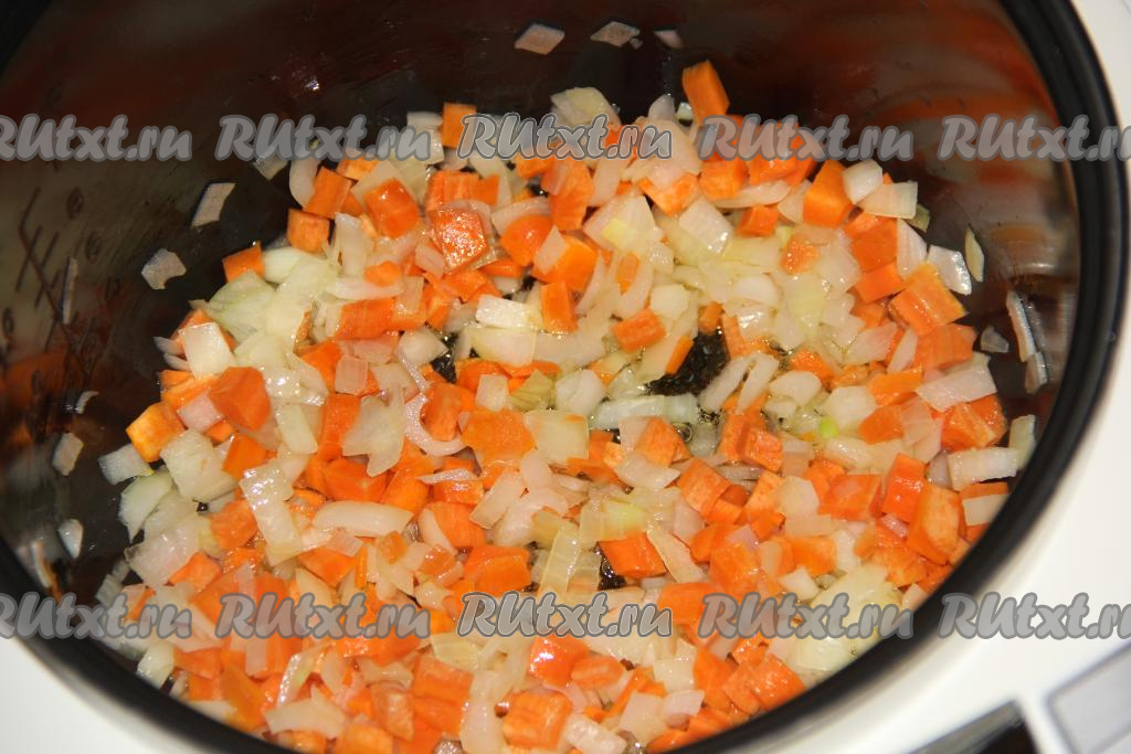 На режиме "Жарка" обжарить морковку и лук в течение 5-7 минут, иногда помешивая.